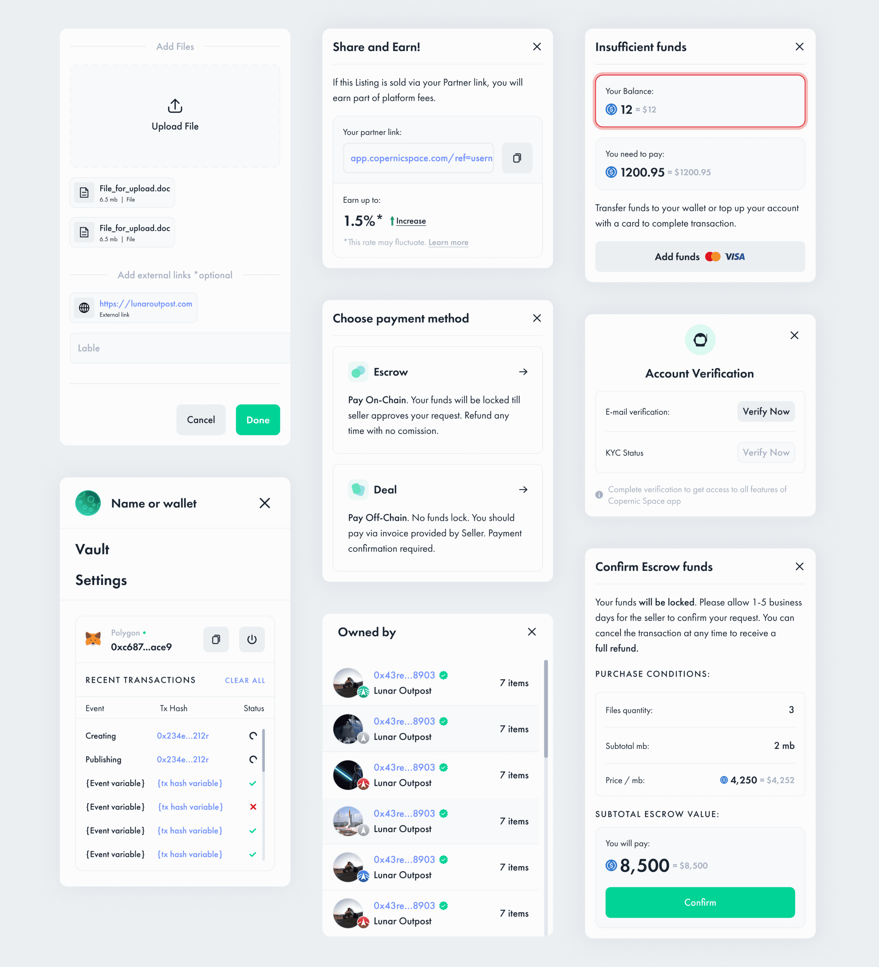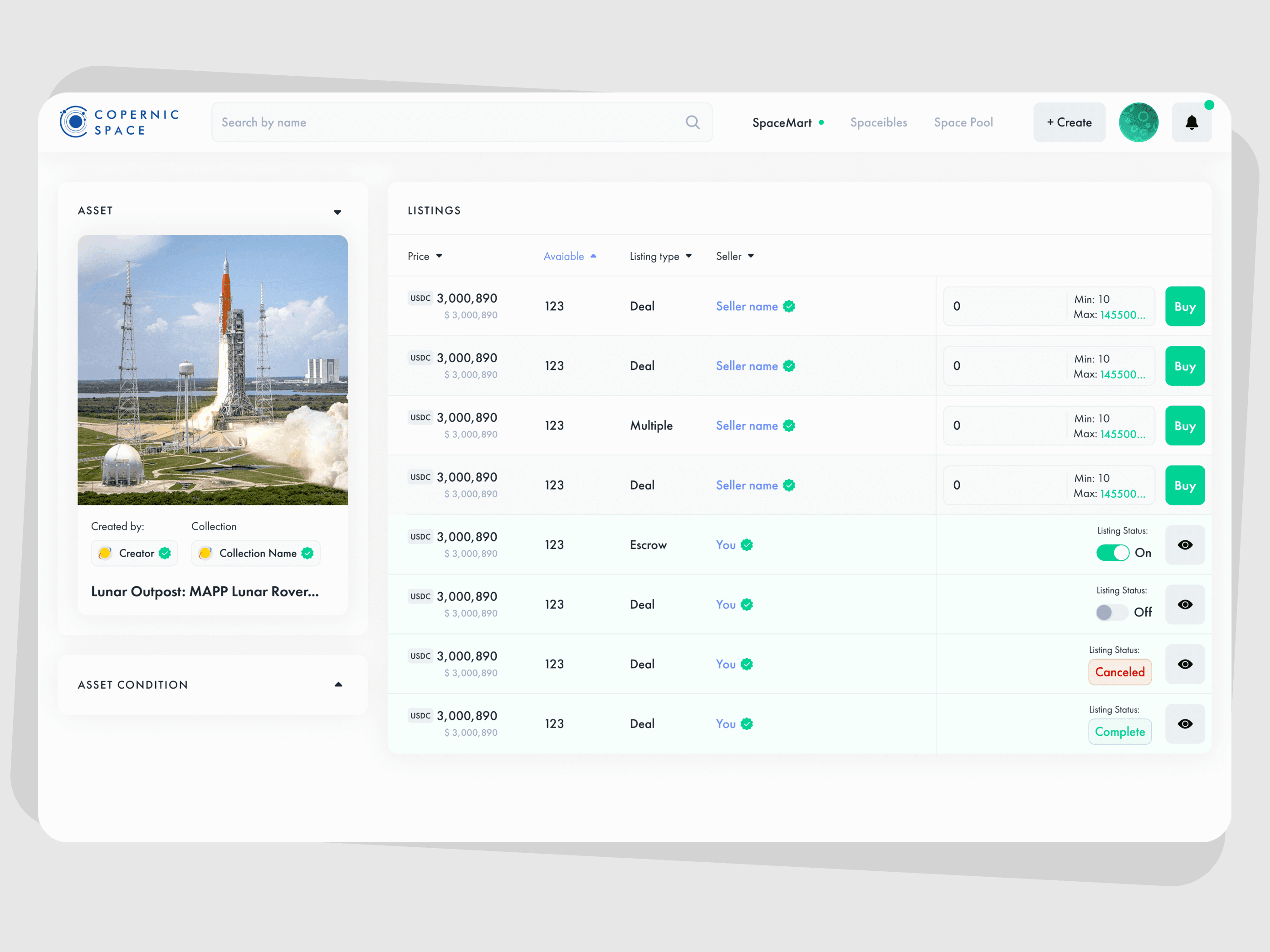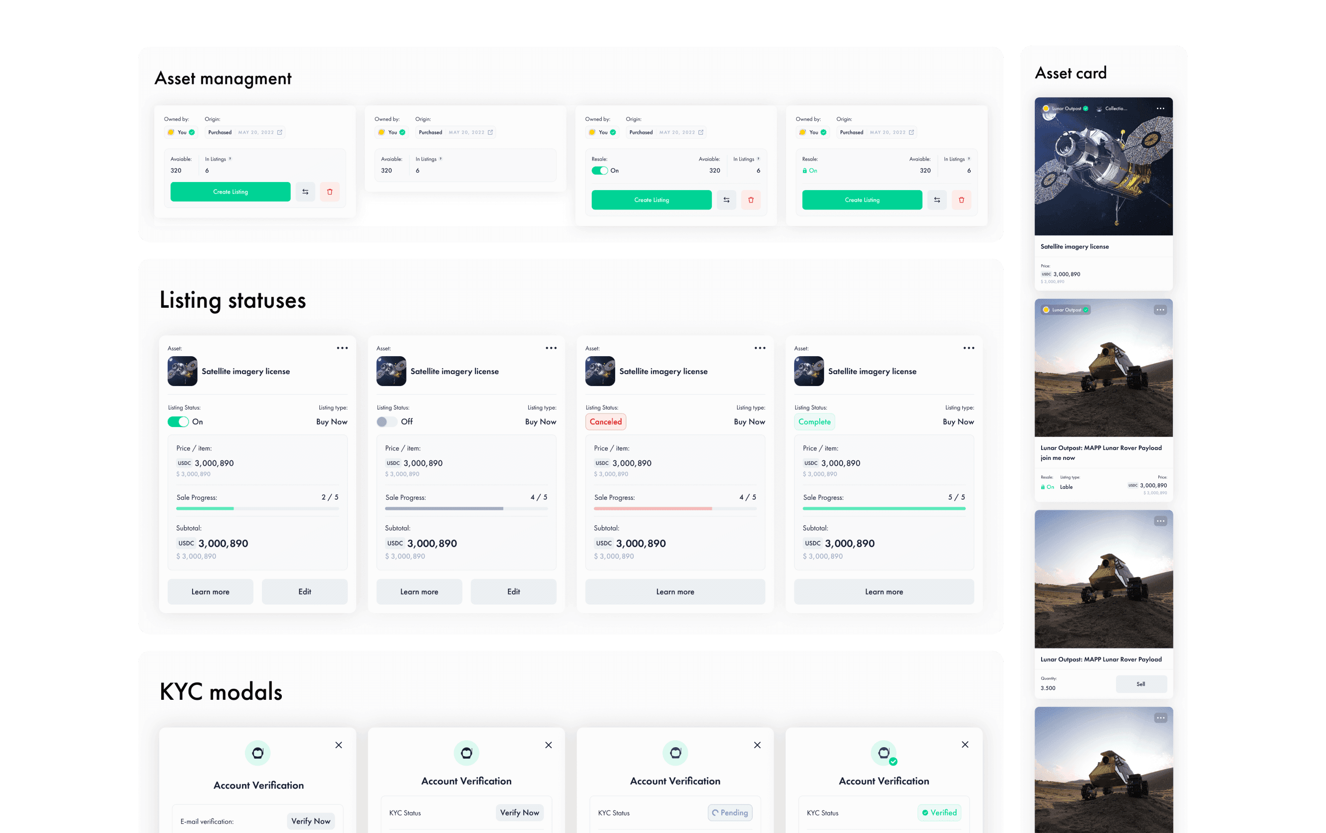 One of the main challenges I encountered during my tenure at the company was the creation of a universal platform for interacting with various types of assets, each with different parameters and selling options.As priorities evolved, the list of asset types the marketplace needed to support expanded. Consequently, I frequently had to adapt designs and user flows to accommodate these new requirements. Recognizing the need for a sustainable solution, I aimed to minimize the time and resources required for rebuilding the product whenever new needs arose. Given that the market in which we were operating was relatively young and lacked direct competitors to serve as references, I conducted ongoing research on various products, some of which were not directly related to our project but could provide functional insights. These research efforts yielded sustainable solutions that could be repurposed. Additionally, I focused on creating a developer-friendly library of components to streamline development and minimize the creation of new UI components during the product's evolution.It's worth noting that, as a startup with limited resources, we occasionally had to prioritize practical solutions over ideal ones. Despite these constraints, we achieved a commendable user experience, which was a rewarding experience for me.