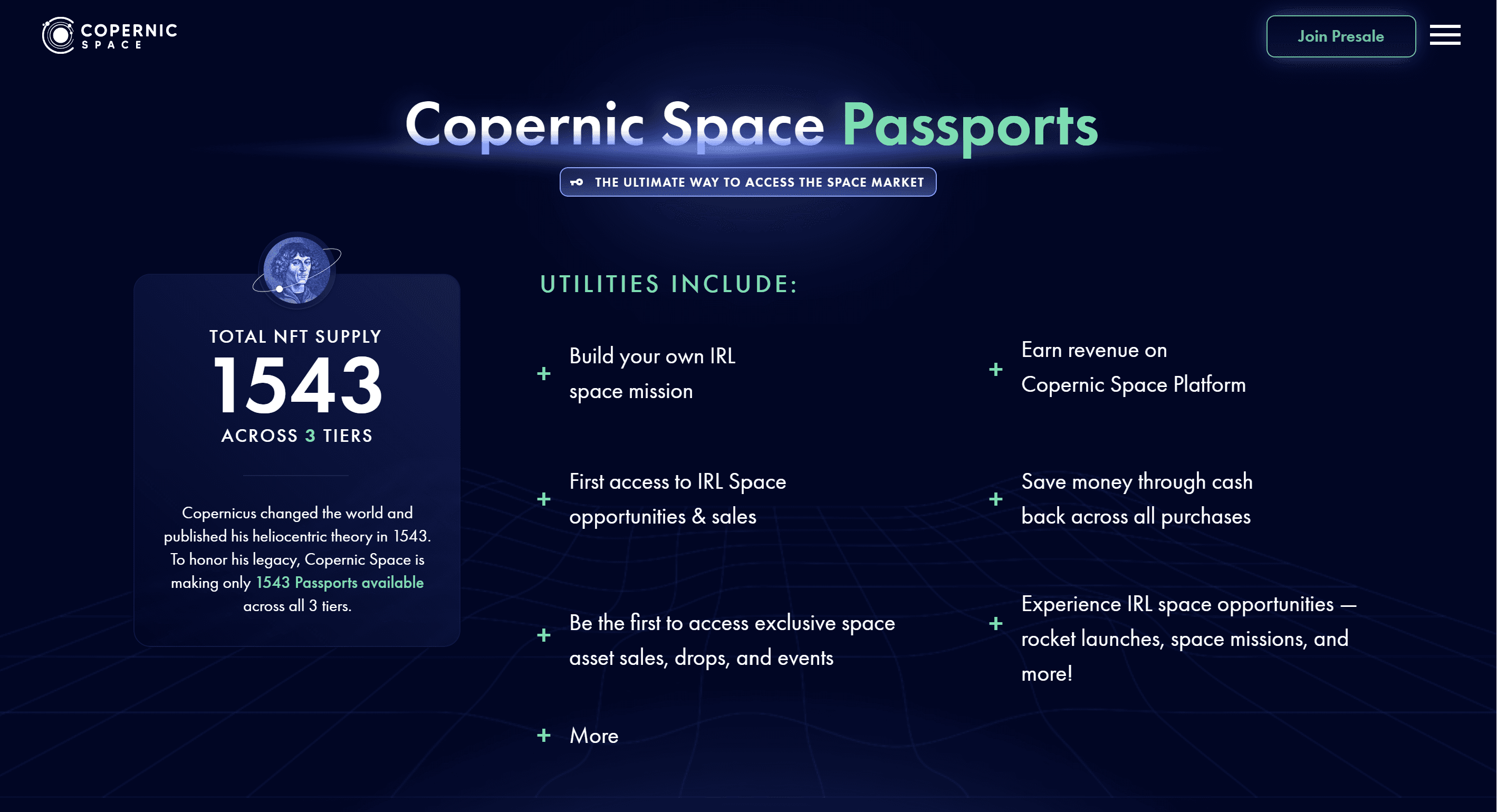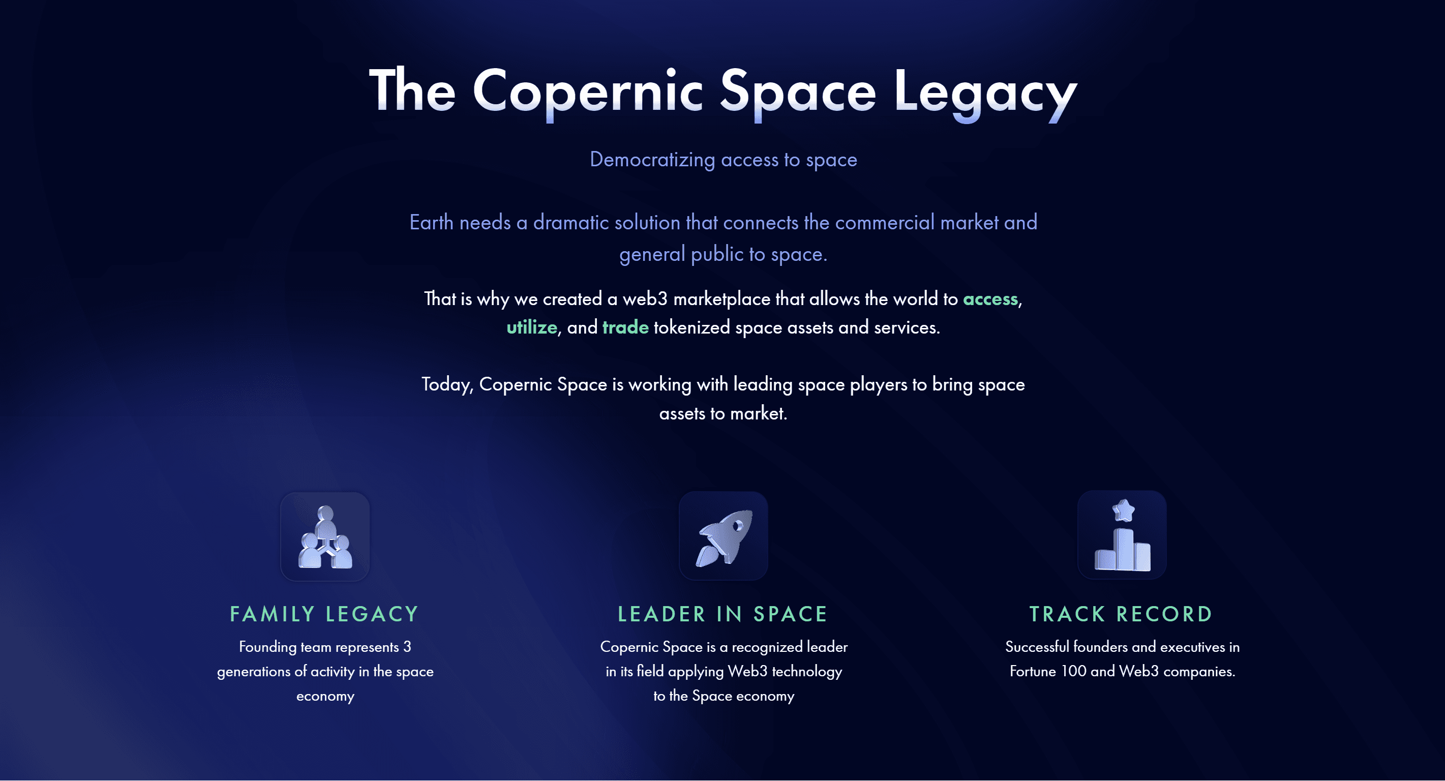 Copernic Space is a Web3 marketplace that provides access to the aerospace economy for a wide audience. The mission of the project is to enable individuals and companies to invest, buy, sell, resell, rent, and acquire partial ownership of space assets through the marketplace. Examples of space assets include satellite imagery, rocket payloads, items that have been in space, space-related art, and more.